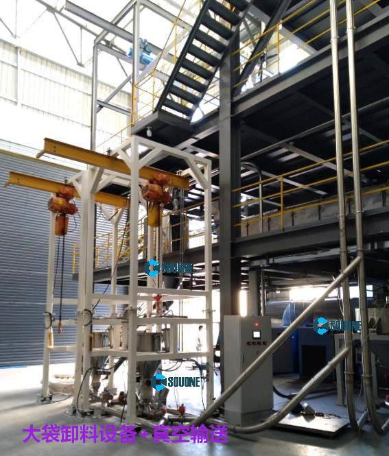 另一種是大袋開袋站是靠自身攜的帶起重設(shè)備將大袋(噸袋)吊裝到卸料機(jī)的機(jī)架上,不需用外界的幫助。